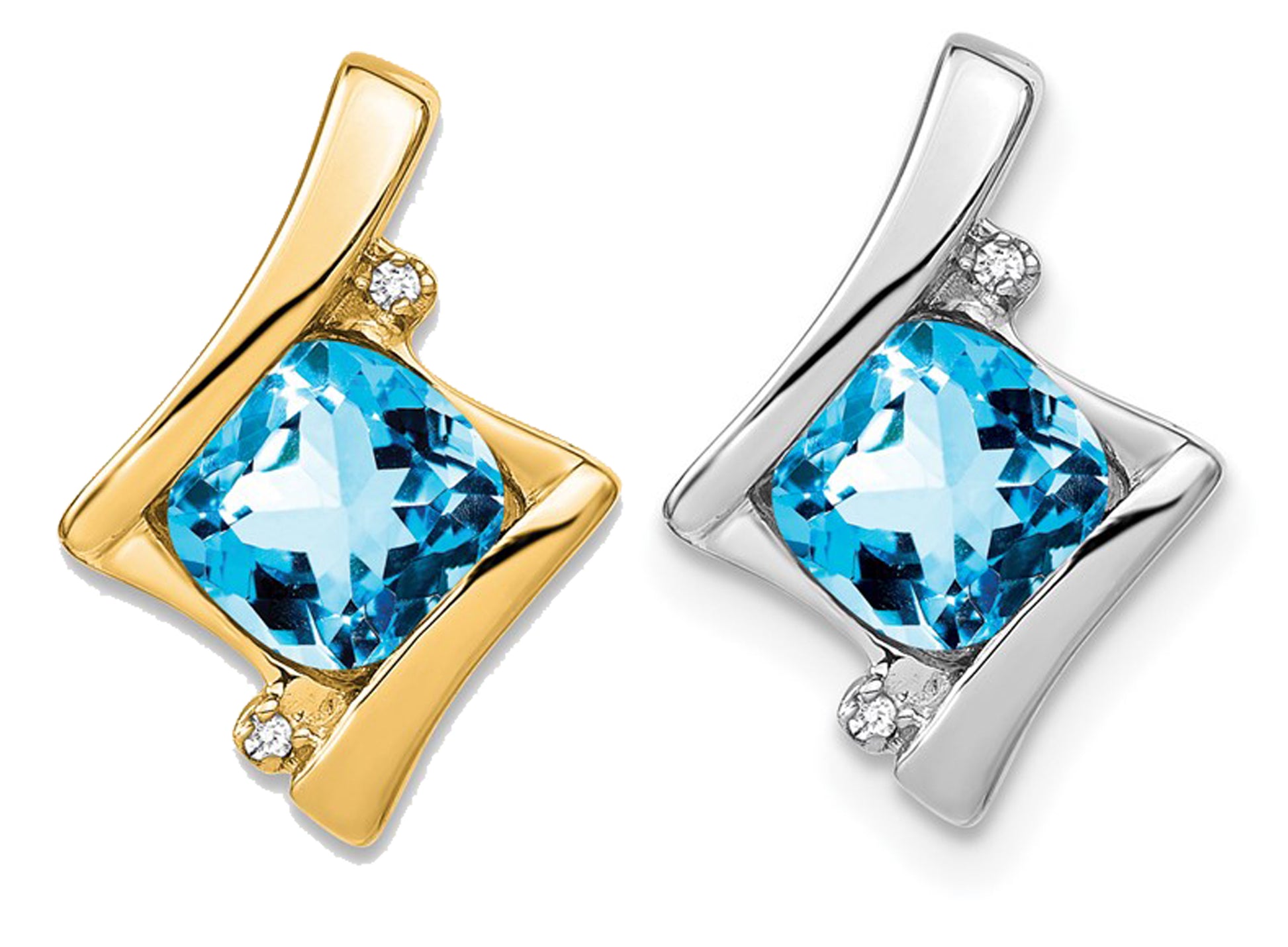 10K White Gold/Yellow Gold 1.25 Carat Blue Topaz & Diamond Chain Slide