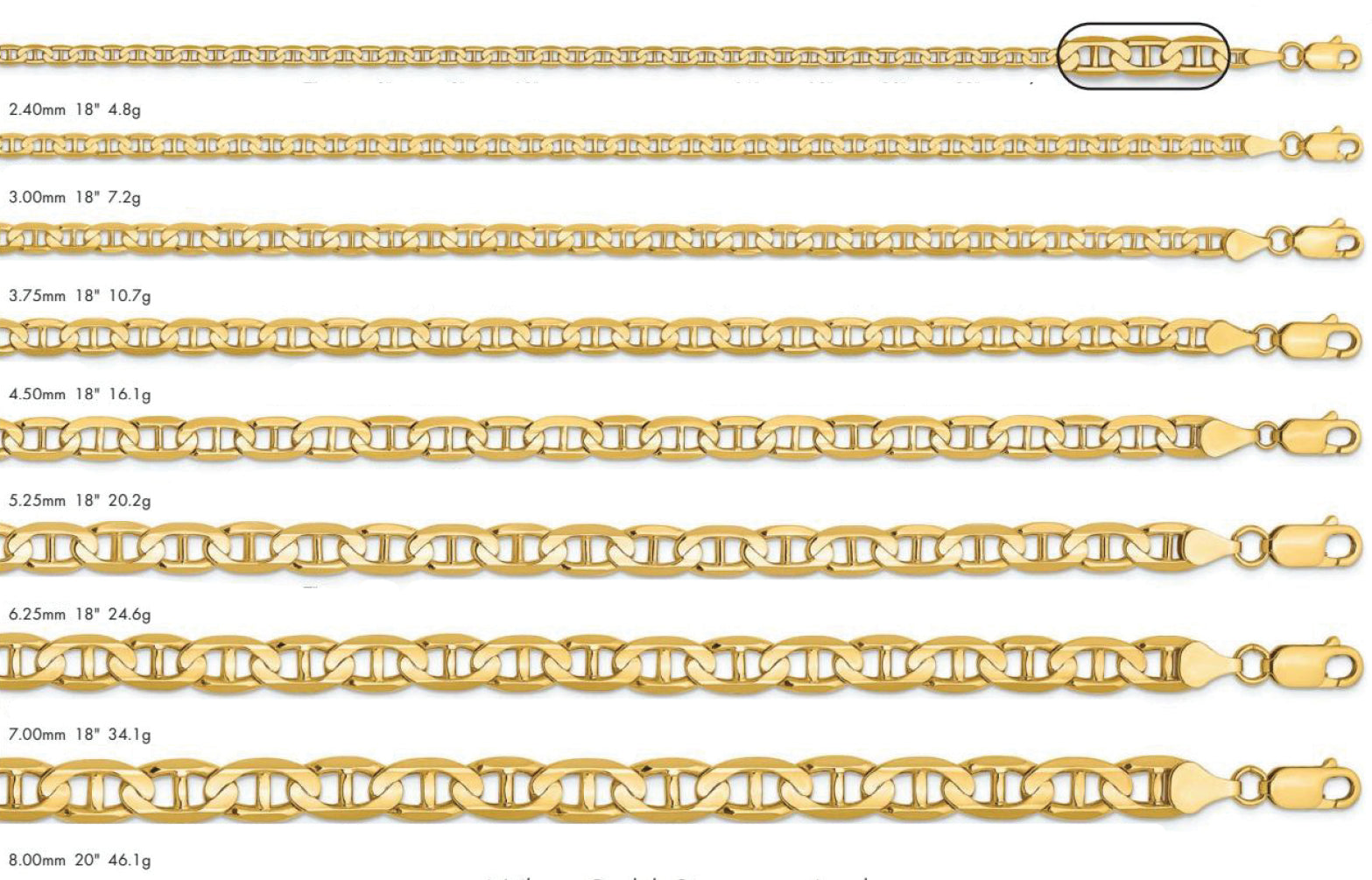 14K Concave Anchor Chain Yellow Gold