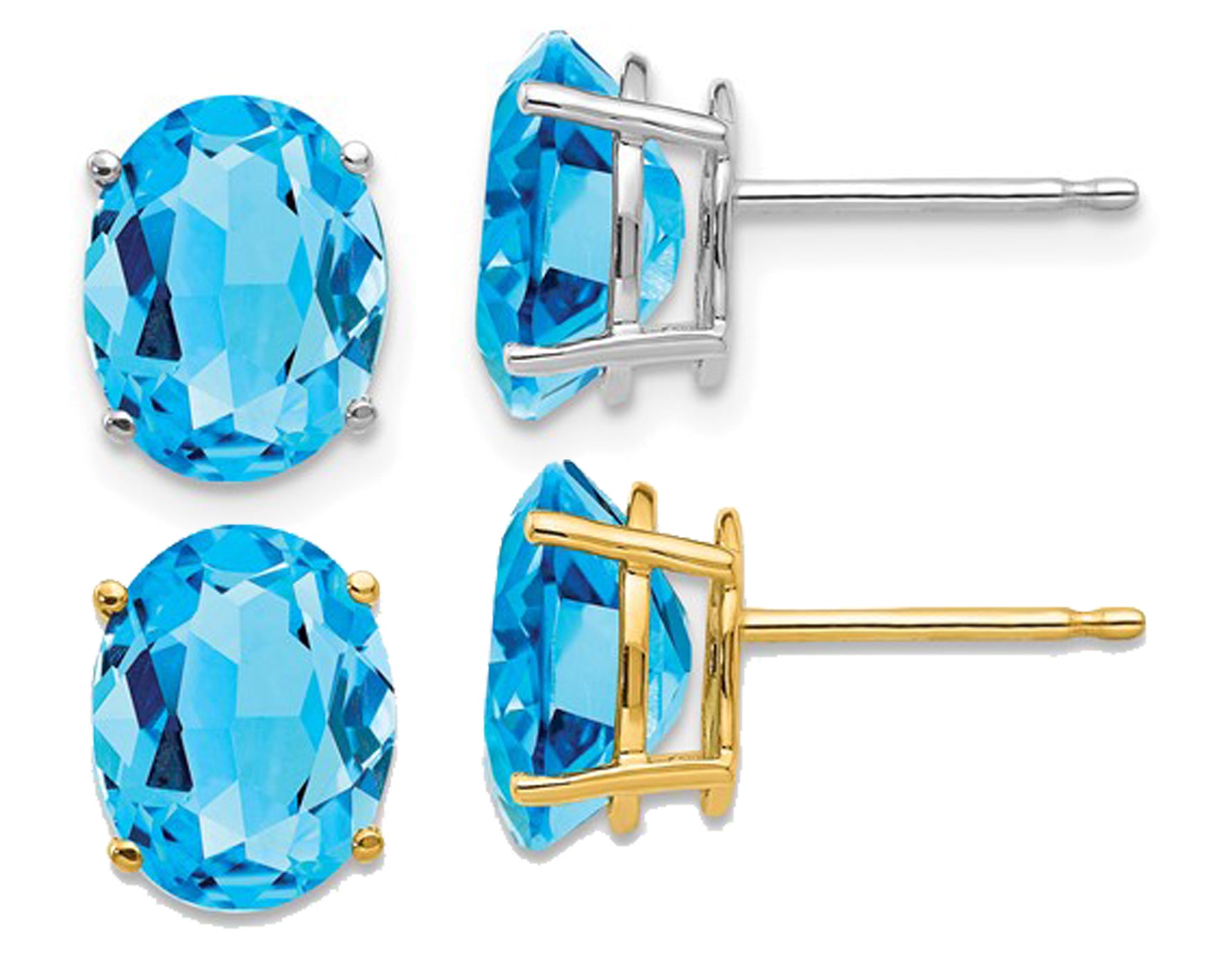 14K White/Yellow Gold 2 Carat Blue Topaz Stud Oval Earrings