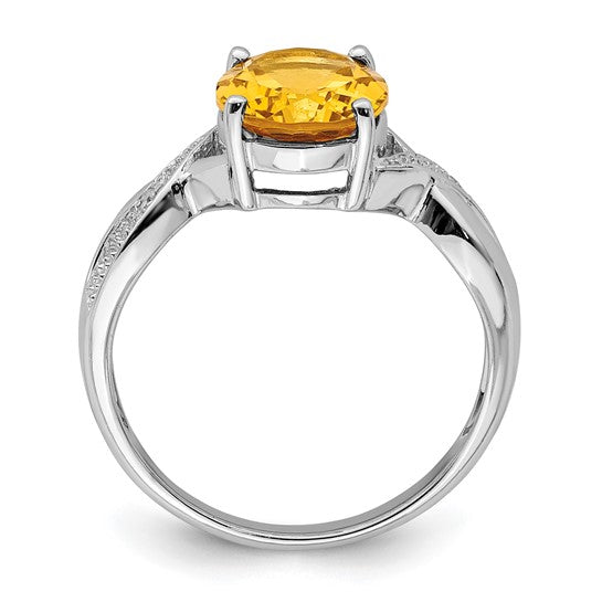 Sterling Silver White Gold Plated 2 Carat Natural Citrine & Diamond Ring