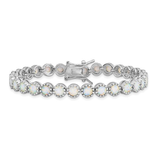 Sterling Silver White Gold Plated Beaded Lab Created Opal Inlay Bracelet