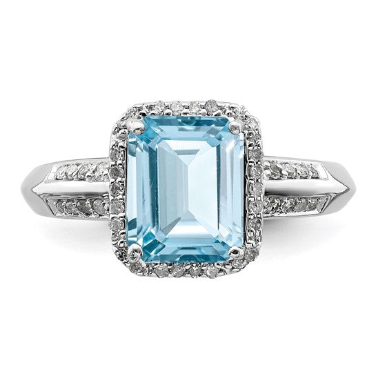 White Gold Filled Sterling Silver 3 Carat Emerald Cut Blue Topaz & Diamond Ring