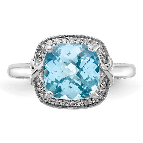 White Gold Filled Sterling Silver 4 Carat Blue Topaz & Diamond Checkerboard Ring