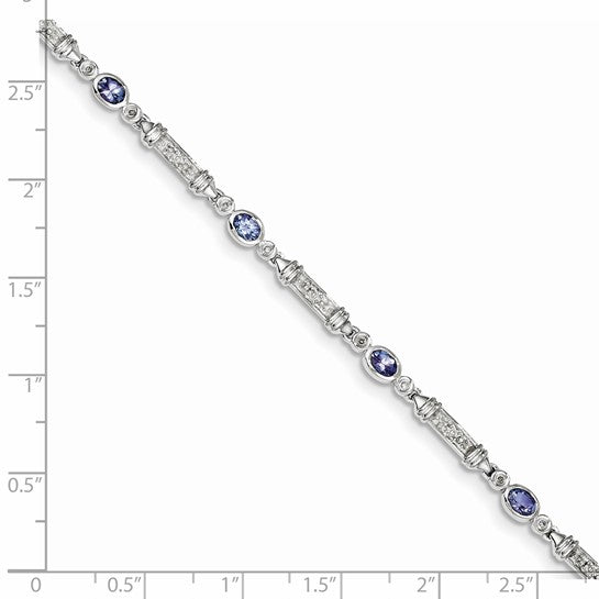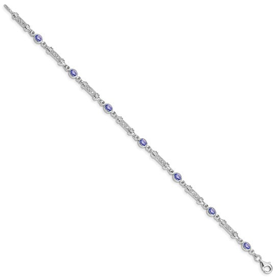 White Gold Filled Sterling Silver Natural Tanzanite & Diamond Rod Bracelet